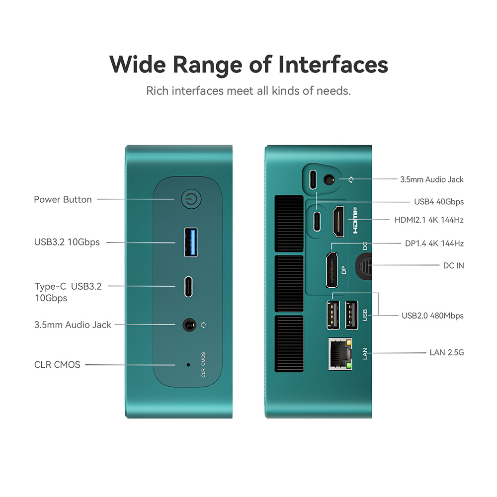 The Beelink SER 7 is a marvel in the world of compact gaming computers. Despite its small size (12.6 x 11.3 x 4.9 cm), this gaming mini PC packs a punch with its AMD Ryzen 7 7840HS CPU, capable of reaching up to 5.1GHz, and its AMD Radeon 780M GPU, ensuring high-performance gaming and multitasking. It’s a perfect blend of low power usage and high performance. Its ergonomic and portable design makes it an ideal choice for various settings, from home offices to gaming setups. Whether you’re a professional needing a reliable workstation or a gamer seeking a powerful yet compact gaming rig, the Beelink SER 7 fits the bill.