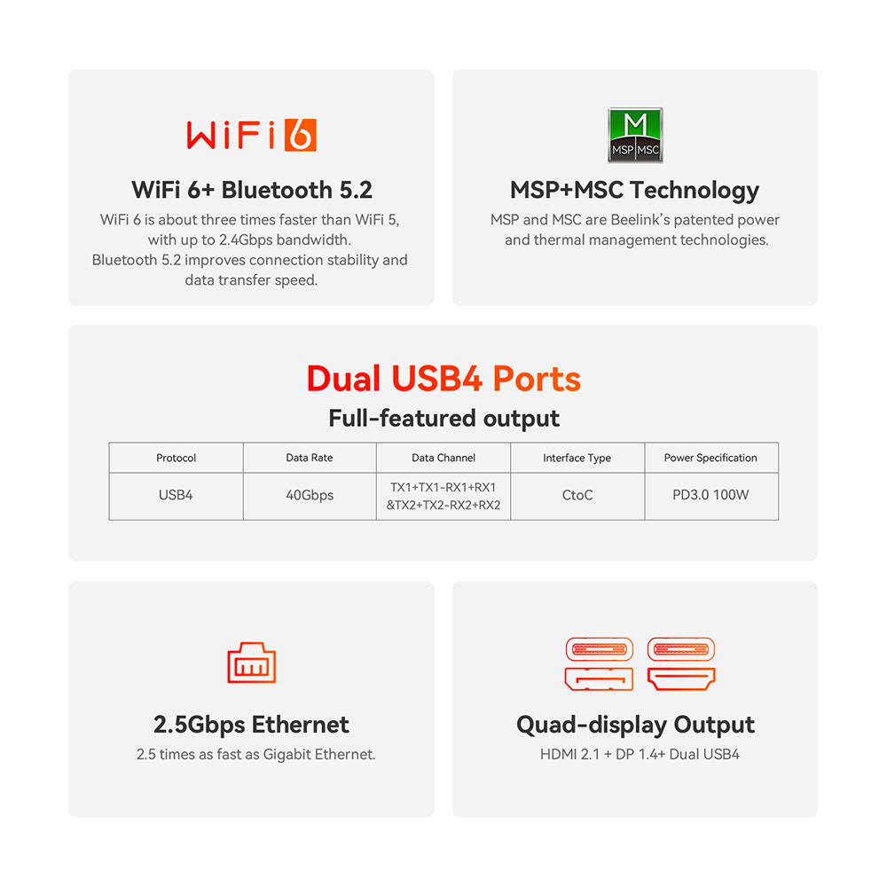 • Quad Display Output DP 1.4, HDMI 2.1 2x USB 4