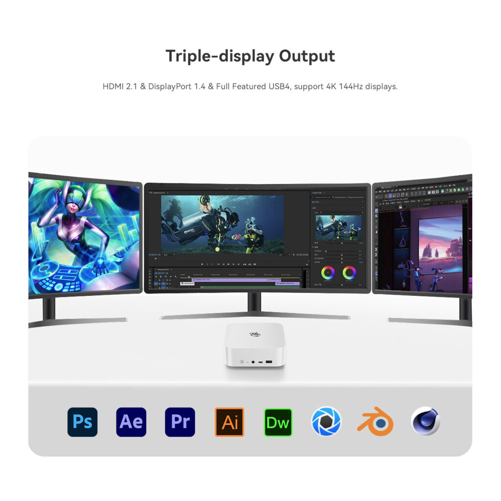 The Beelink SER8 mini PC offers cutting-edge connectivity features designed to enhance your computing experience. It includes the advanced USB4 protocol, providing data transfer rates of up to 40Gbps. This ensures rapid data exchange and seamless connection to various devices, supporting high-speed peripherals and external storage solutions.