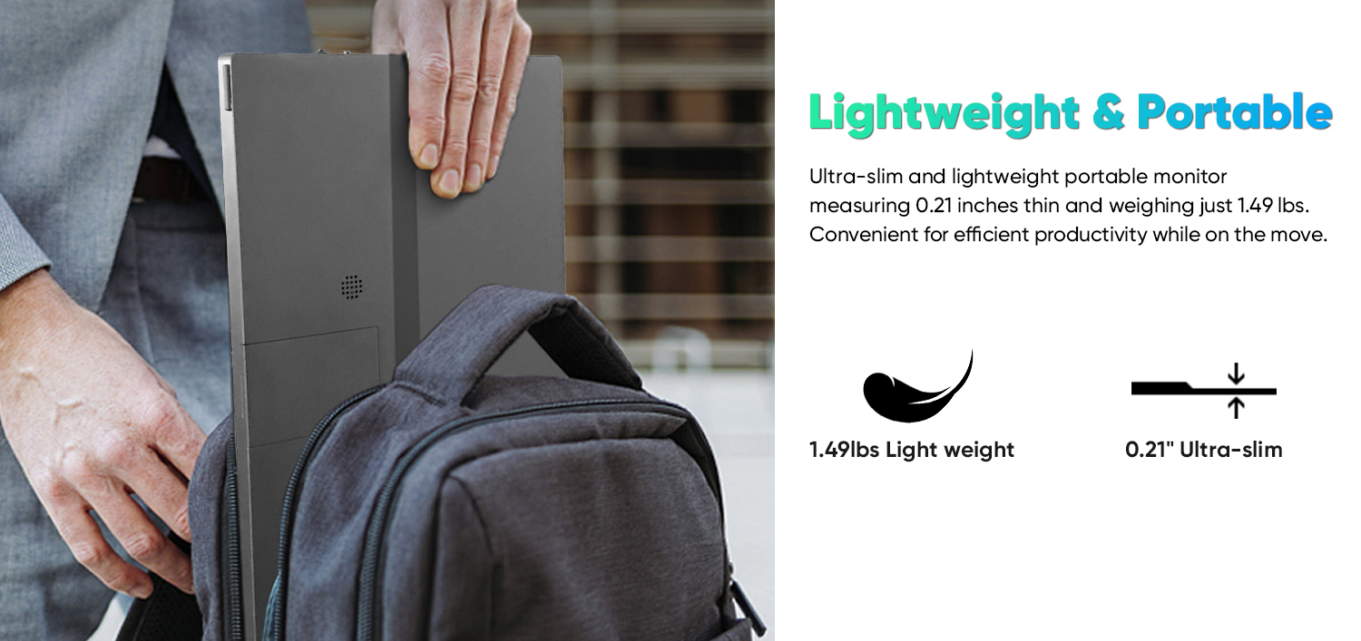 Image of DroiX Portable Monitor 14 inch 4K Ultra Thin featuring a crisp 3840x2160 UHD resolution with vibrant colors and incredible detail DCI P3 100 color gamut and HDR400 support