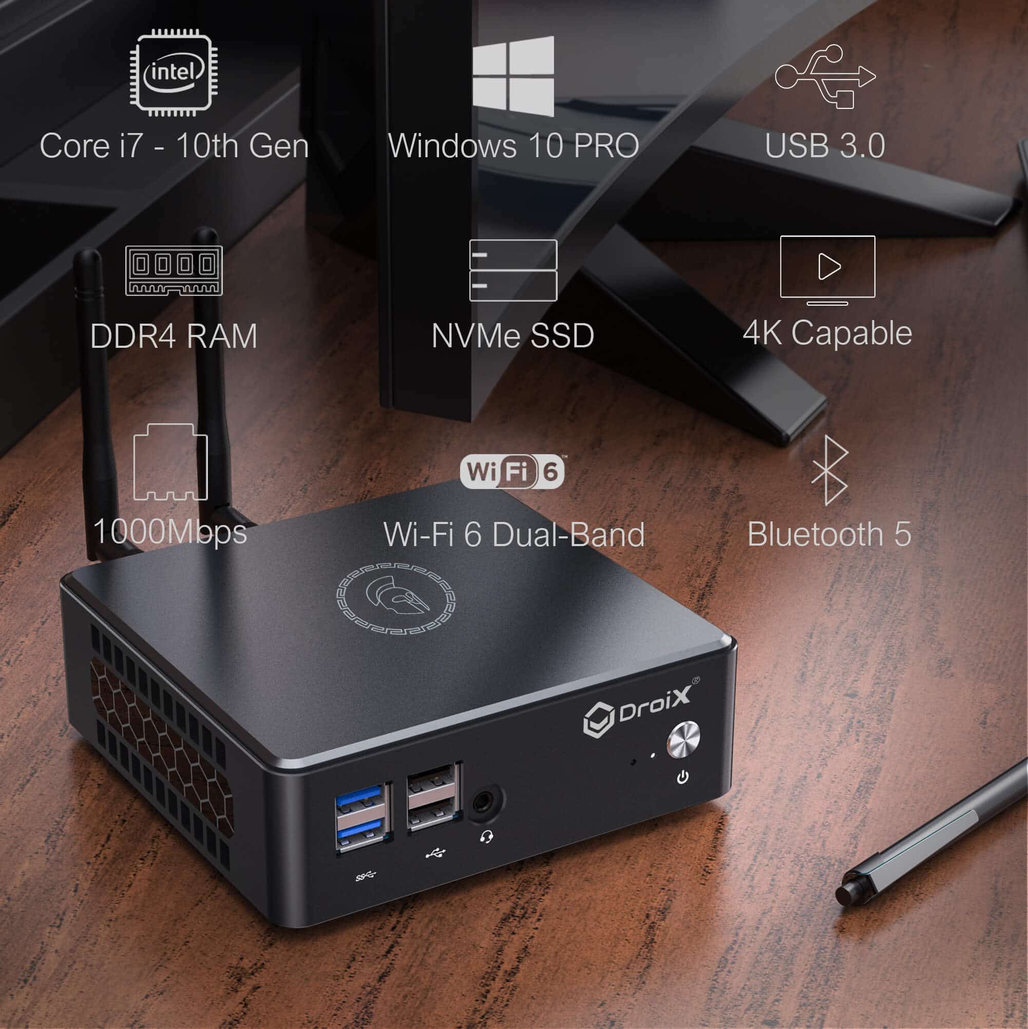 The DroiX Proteus 10S is a higher-spec variant of the DroiX Proteus 10. It is a great solution for those looking for a steadfast home office PC, enterprise PC solution, digital kiosk, and more.