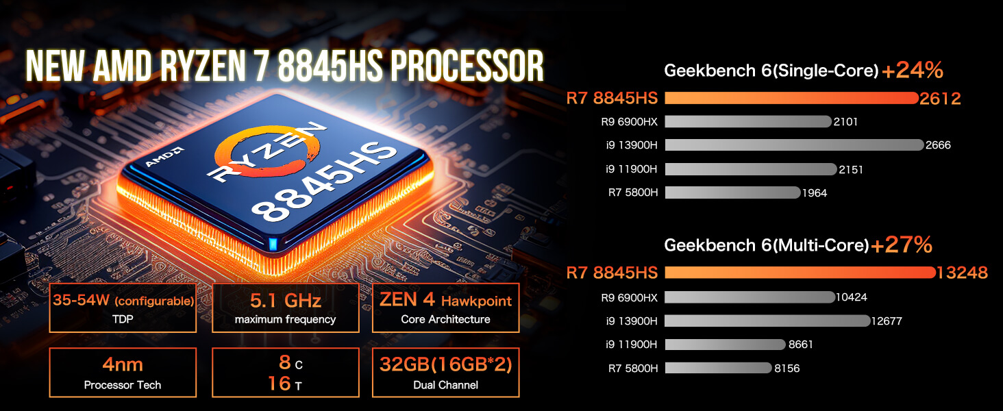 The GMKTec NucBox K8 is a game-changer in the realm of mini PC with AMD processors, combining low power usage with high performance in a sleek, portable design. It boasts an AMD Ryzen 7 8845HS processor, featuring 8 cores and 16 threads, capable of reaching a maximum boost clock of 5.1GHz. This ensures that even the most demanding tasks are handled with ease, whether you’re working on complex creative projects, engaging in smart manufacturing, or simply enjoying a seamless home office experience.