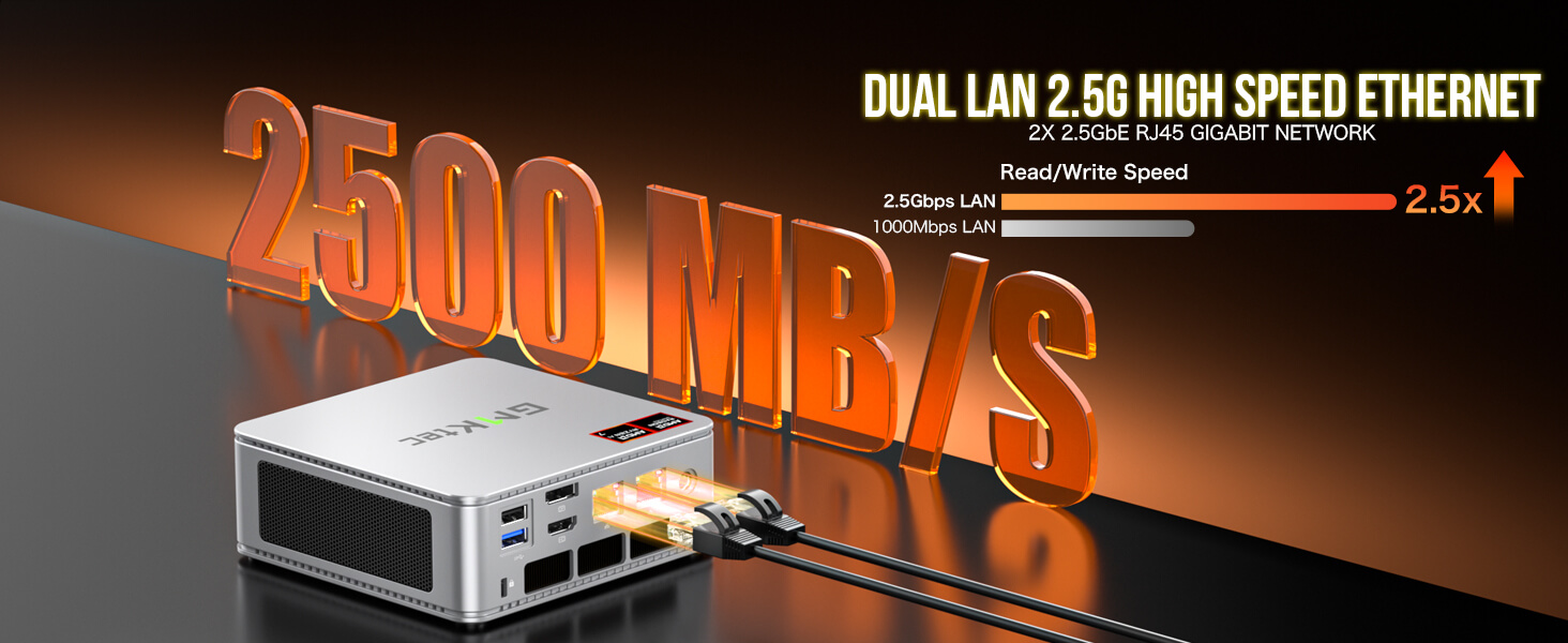 The GMKTec GMKTec NucBox K8 mini PC for business comes pre-installed with Windows 11 Pro, offering a user-friendly interface and a wide range of applications, from office suites to design software and gaming platforms. The inclusion of RZ616 WiFi 6E and Bluetooth 5.2 ensures fast and stable wireless connectivity, while the dual Giga LAN (RJ45) 2.5G ports provide reliable and speedy wired connections. The device also supports auto power-on settings, which can be configured in the BIOS, adding to its convenience.