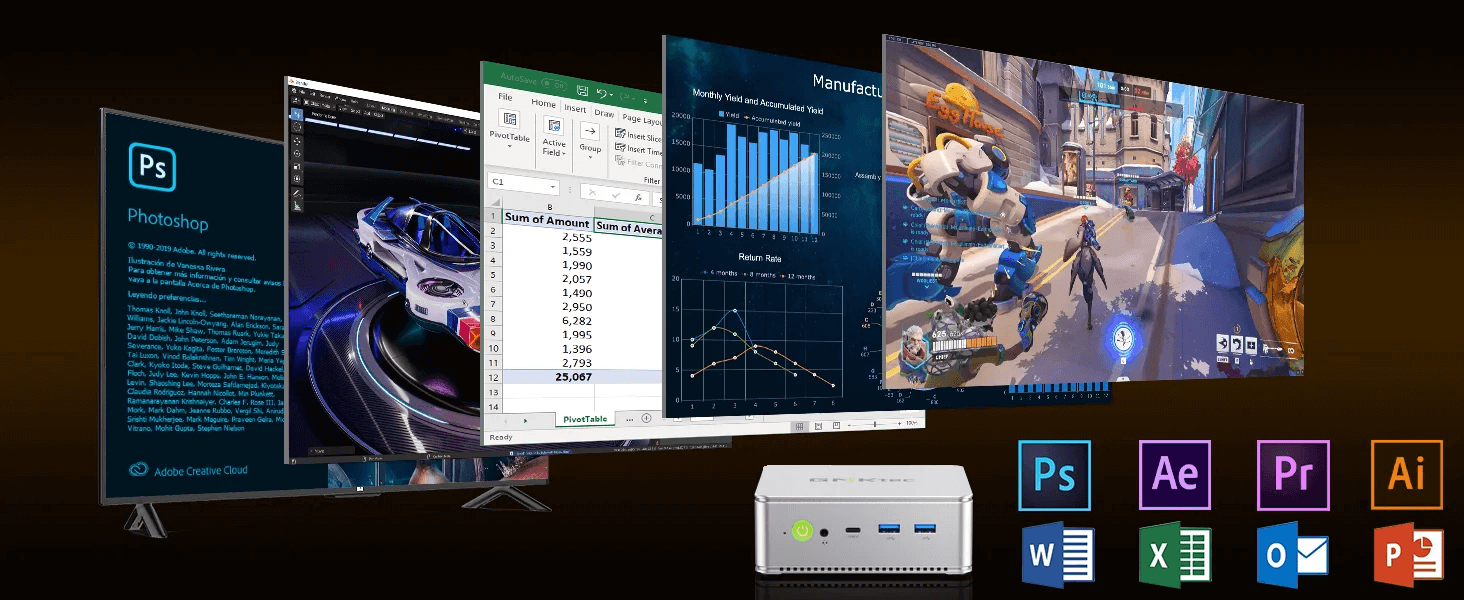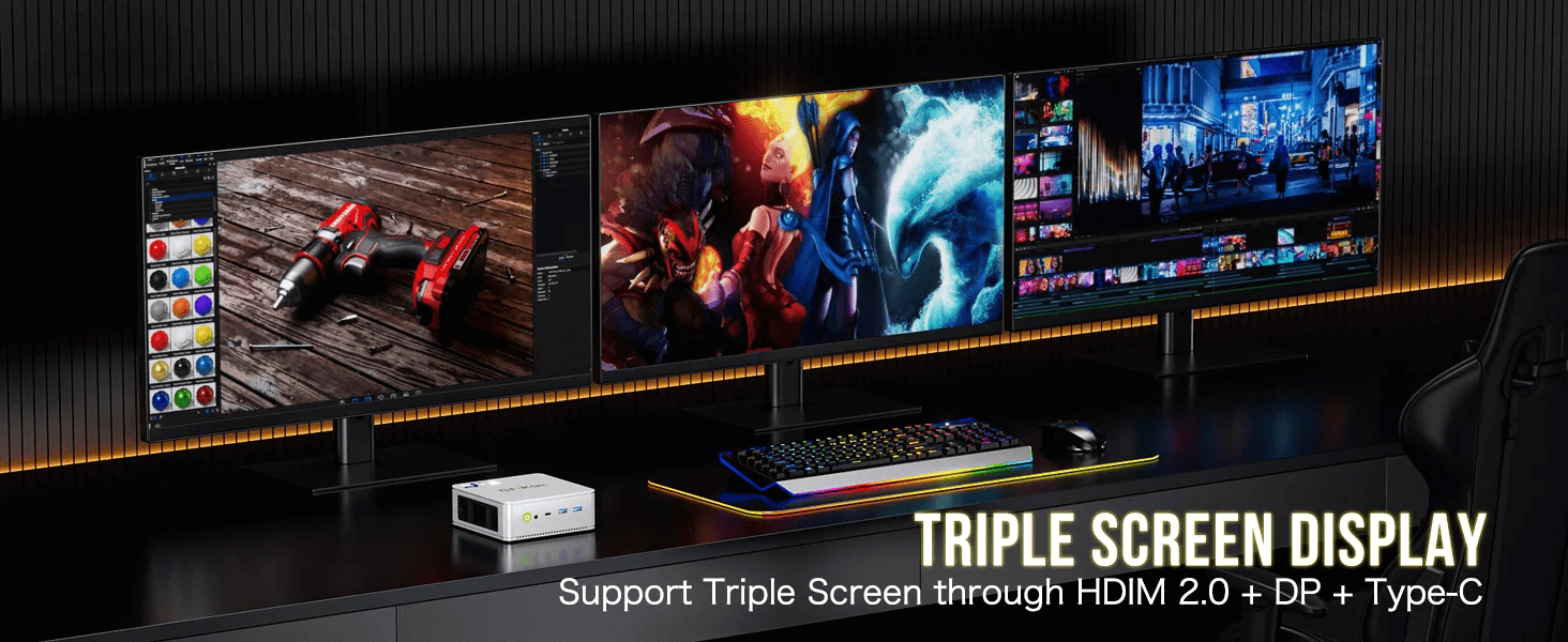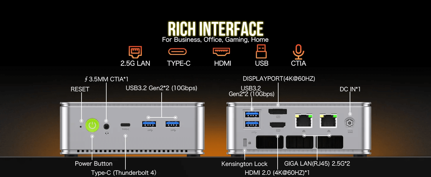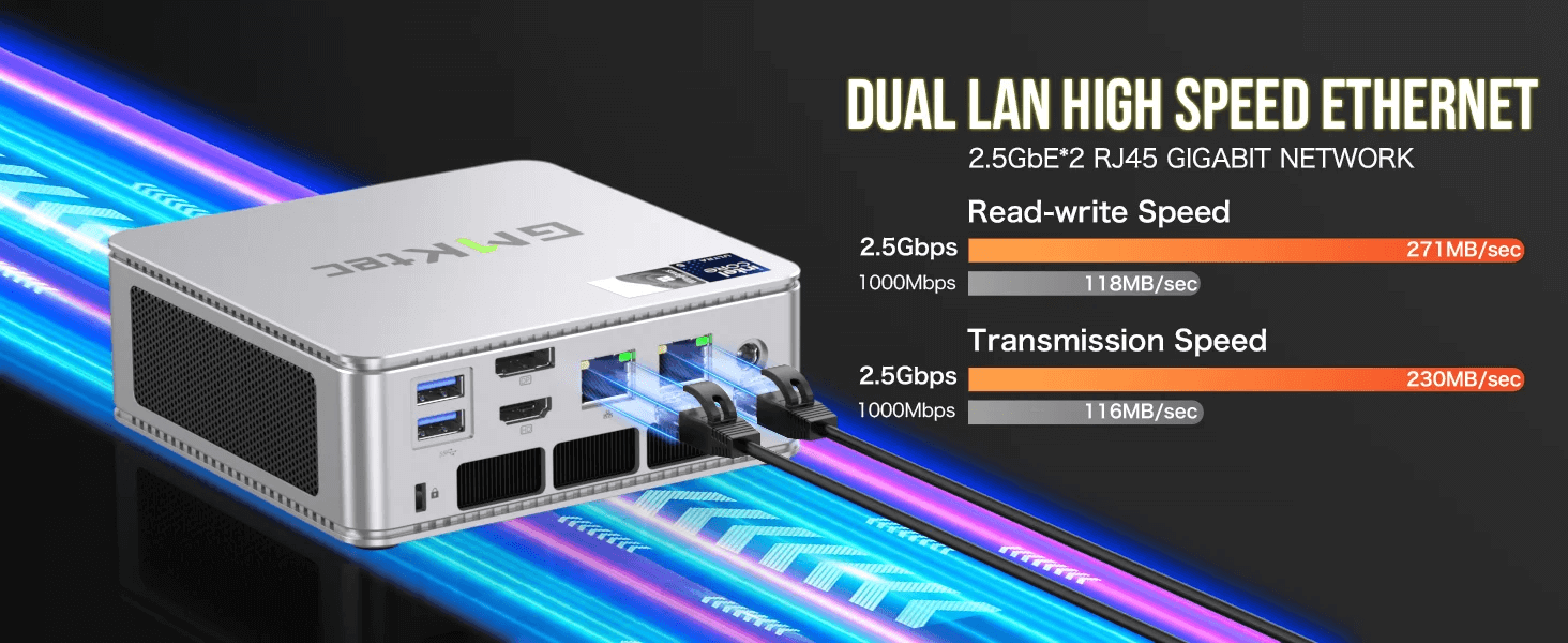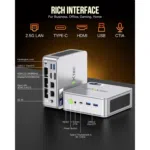 Running on Windows 11 Pro, the GMKTec NucBox K9 offers a user-friendly interface with enhanced security features. The operating system supports a wide range of applications, from office suites to design software and lightweight gaming. The mini PC’s robust connectivity options, including Wi-Fi 6 and Bluetooth 5.2, ensure seamless integration with other devices and peripherals. Dual 2.5G LAN ports provide high-speed wired network connections, essential for business environments that require stable and fast internet access. The compact design and lightweight construction make the NucBox K9 perfect for mobile office setups, business trips, and home entertainment systems.