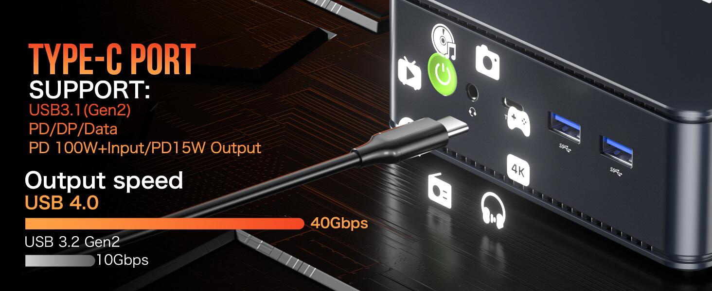 Its ergonomic design and compact size, measuring just 128.8 x 127 x 51.8mm, allow it to fit effortlessly into any workspace, whether at home or in the office. The device supports up to three displays, providing versatile video output options with HDMI 2.0, DisplayPort, and a USB 4.0 Type-C port. This makes it an excellent choice for multitasking and productivity in various environments.