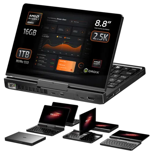 The rotating display further enhances its versatility, allowing seamless transitions between laptop and tablet modes to match your workflow or leisure activities. The GPD Pocket 4 isn’t just designed to deliver outstanding performance—it’s built to captivate with its premium display and adaptable features.