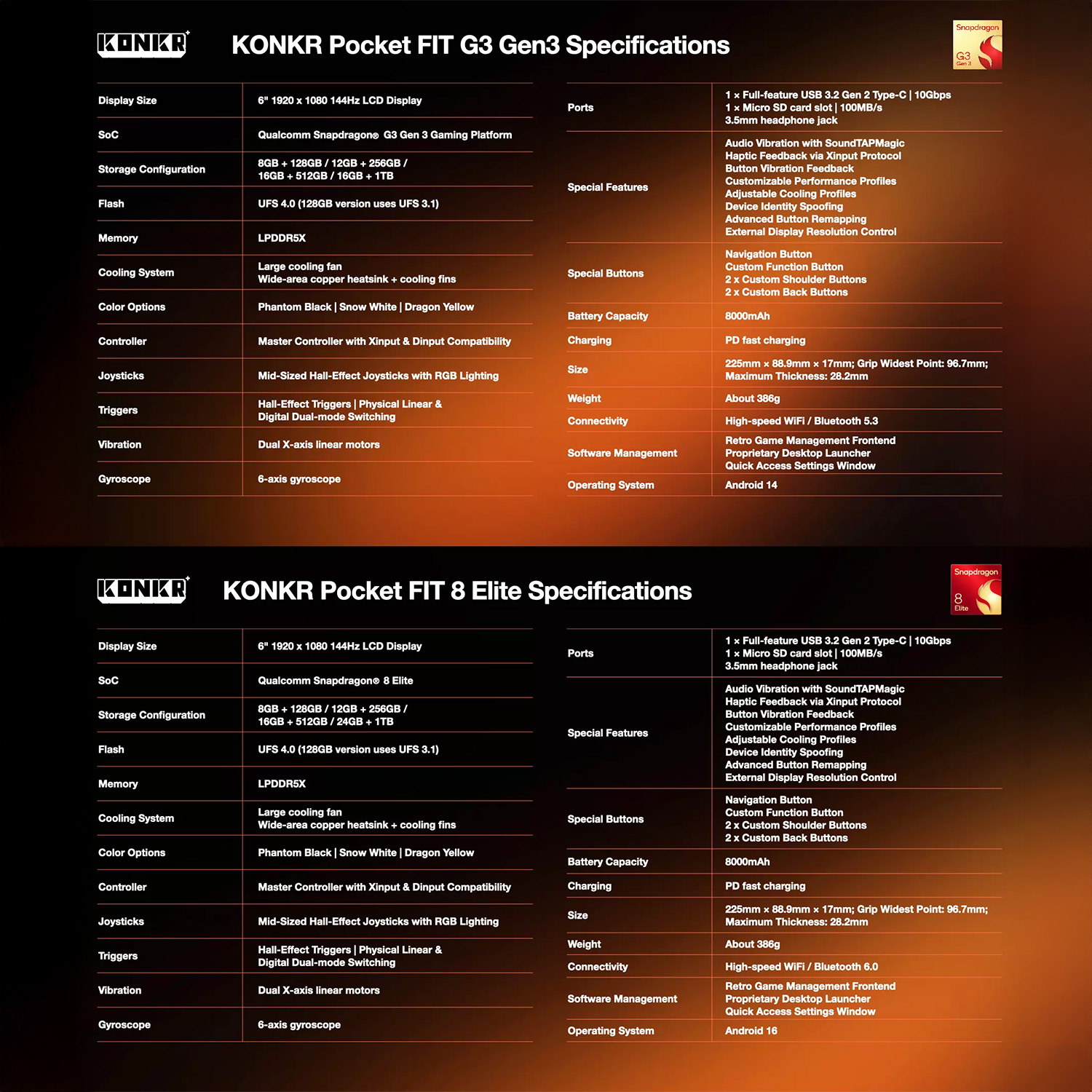 The KONKR Pocket FIT stands as a titan of innovation in the realm of high-end Android gaming devices. Powered by a choice of formidable processors—the gaming-focused Qualcomm Snapdragon® G3 Gen 3 or the top-tier Qualcomm Snapdragon® 8 Elite—the Pocket FIT delivers breathtaking performance. This power is visualized on a stunning 6″ 1920 × 1080 LCD display with a blazing-fast 144Hz refresh rate, bringing your games to life with fluid motion and vibrant clarity.