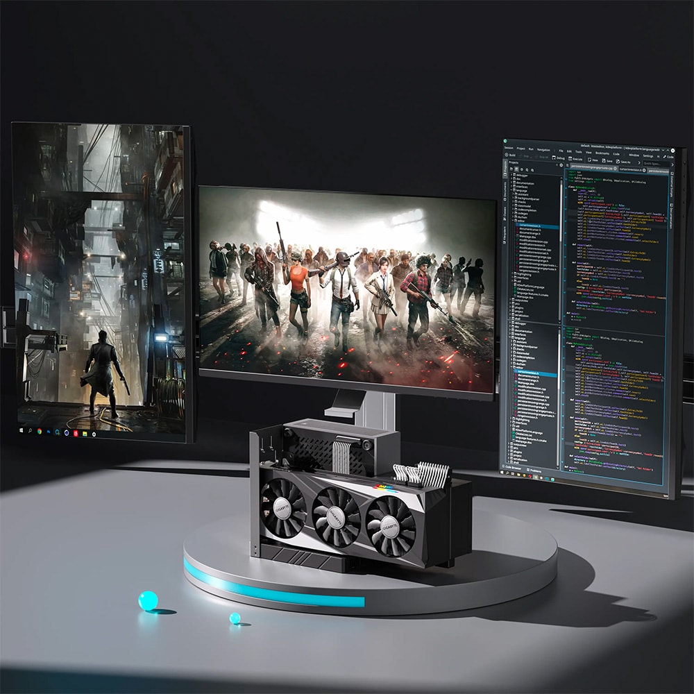 There is support for up to three monitors via the two HDMI and DisplayPort capable of 4K at 60Hz each. There is an included frame design that is optionally attached to the Minisforum Elitemini B550, which in turn connects an external graphics card (eGPU) such as a GeForce 4090 for even faster performance! The process is easy and straightforward to install to the mini PC.