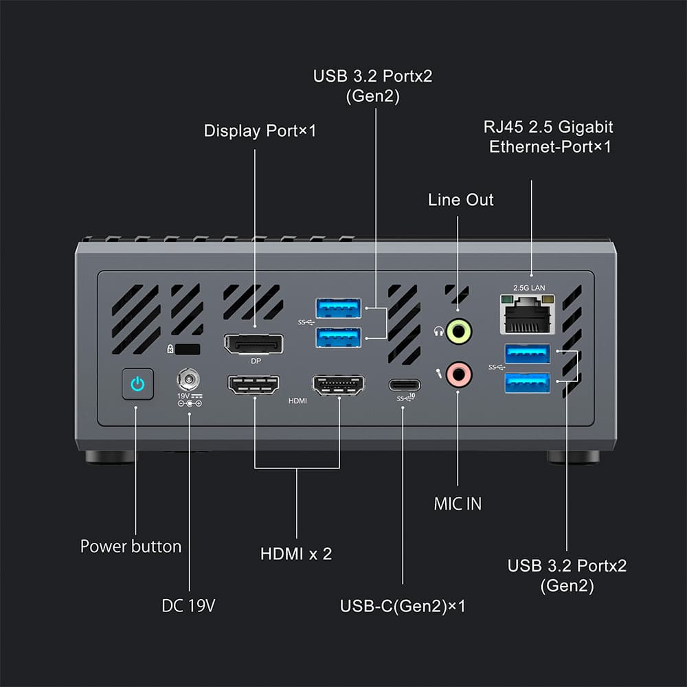 On the Minisforum Elitemini B550 Mini PC you can find high speed and reliable WiFi 6 and Bluetooth with a 2.5Gb ethernet for the best in data transmission. There is a USB Type-C Gen 2 port and four USB 3.2 for peripheral connectivity.
