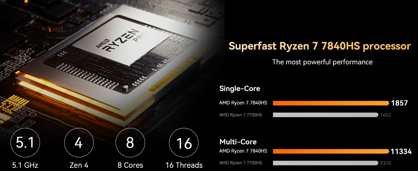 Introducing the MINISFORUM EliteMini UM780 XTX, a revolutionary Mini PC designed to elevate your computing experience. Powered by Windows 11 Pro, this compact marvel features cutting-edge hardware, including the AMD Ryzen™ 7 7840HS processor with 8 cores and 16 threads, a base frequency of 3.80GHz, and a turbo boost up to 5.1GHz.