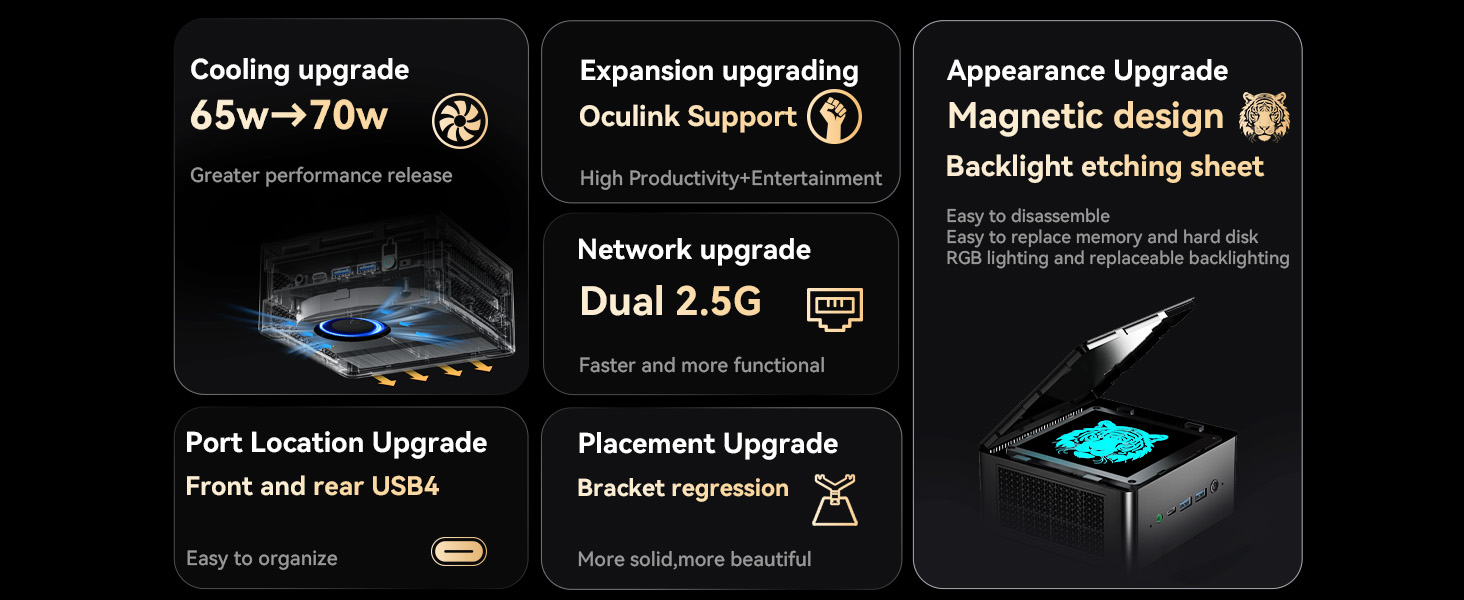 Transform your workspace with the EliteMini UM780 XTX’s exceptional quad display support. Utilize the 2x USB 4.0 Type-C, 1x HDMI 2.1, and 1x DisplayPort 1.4 ports to extend your desktop across multiple monitors. Whether you’re working on complex projects or enjoying immersive gaming, the quad display output opens new possibilities.