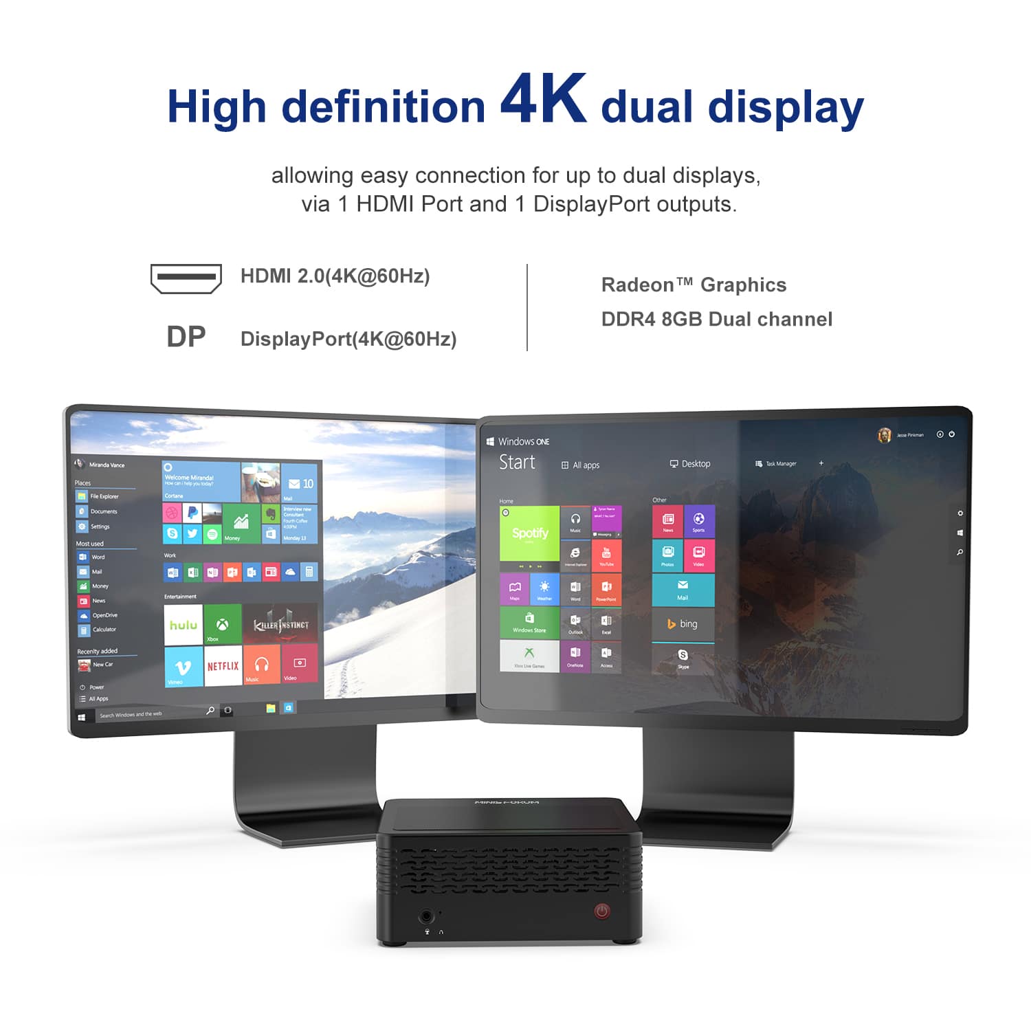 Plenty of Ports and Peripherals – This AMD mini PC features four USB 3.1 ports as well as a dedicated 3.5mm audio jack, and separate LINE OUT/HP OUT outputs. This is combined with built-in Bluetooth 5.0 functionality to easily allow all manner of wired and wireless perhipherals to smoothly, seamlessly function with the unit.