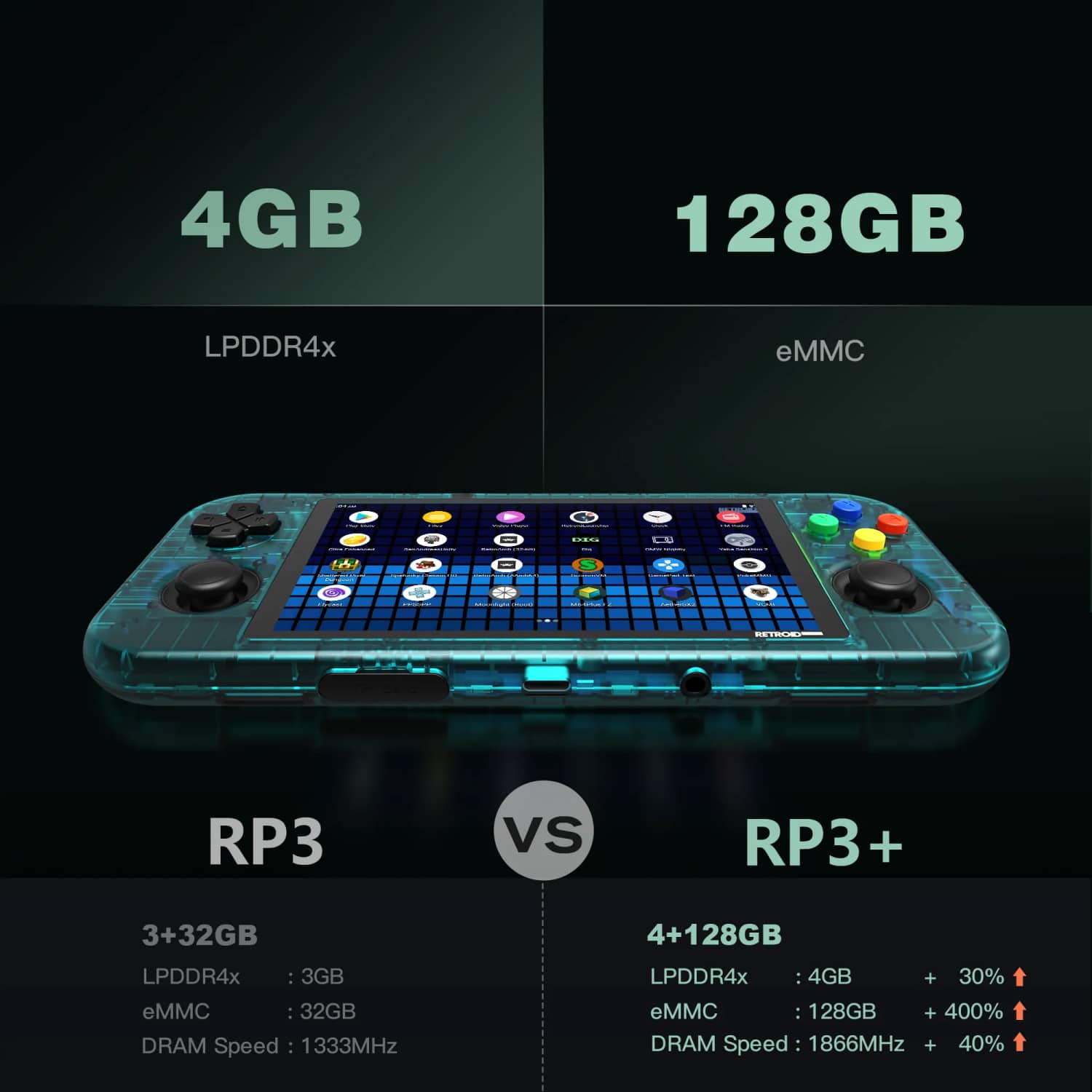 There is 4GB of LPDDR4x RAM and 128GB internal eMMC 5.1 storage inside the Retroid Pocket 3 Plus handheld gaming console. You can further expand the storage via the Micro SD Card slot.