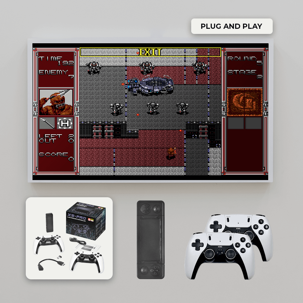 With a minimalist and compact design, the X9 Pro Game Stick easily fits into any entertainment setup. Its small footprint makes it ideal for portability, while the wireless controllers and simple plug-and-play setup allow gamers to dive straight into their favorite classics without hassle.